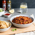 Tomato Sugo [Tomatoes (49%) (Firming Agent (Calcium Chloride), Beef Mince, Red Kidney Beans [Red kidney beans (small red variety) (60%), water, sugar, salt, firming agent (509), food acid (Acetic acid)], Carrots, Brown Onions, Celery, Red Capsicum, Crushed Garlic, Extra Virgin Olive Oil, Corn Kernels, Smokey paprika [Paprika, Canola Oil, Vegetable Powders, Smoke Flavour], Cumin Seeds, Oregano, Taco Seasoning [Salt, Spices, Sugar,